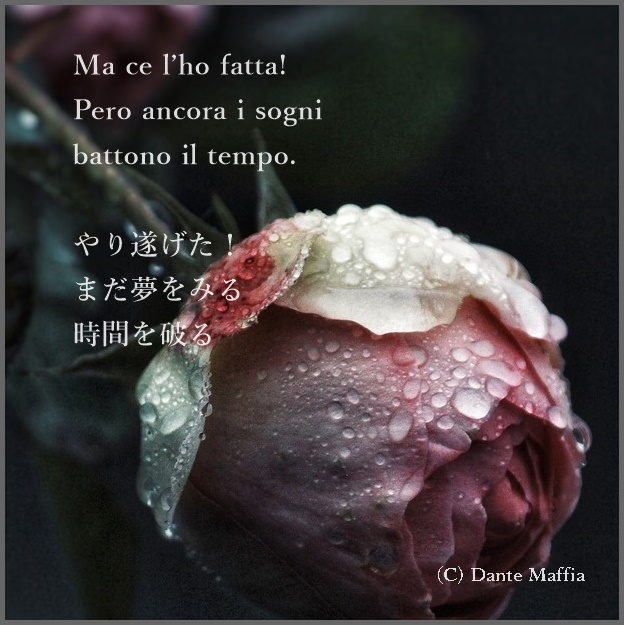 私がこれを言うのは、私が彼の誇張、やり過ぎ、熱狂的な情熱を持って、完全に参加して読んだ彼のどんちゃん騒ぎの目撃者だからです。私は彼のアーカイブの管理者であり、彼が最も親密な秘密を打ち明ける友人であり、彼が継続的に研究し、執筆するように駆り立てる希望を伝えている友人です。私はダンテ・マッフィアの最初の詩的経験を手にしており、彼が 14 歳のときに出版された小冊子「I canti dello Jonio」、つまり彼の海と、1964 年に出版された別の「E'più bella la notte」を持っています。彼が十八歳の時。 当時、マッフィアは俳句が何であるかをまったく知りませんでした。彼は、図書館のないイタリアで最も貧しい地域であるカラブリアの僻地に住んでいましたが、いくつかの例を挙げて、「Alba sul mare 」:「水/火を養う/岩の」. または、「雲」について言えば、「バラ色のタペストリー / フリンジ付き / 死にかけている太陽の」. さらにいくつかの例; 「錯覚」: 「ある / いくつかの白い帆が / 海の上にある」. または「太陽」:「深い闇/澄んだ空/地球を眩惑させる」. またはもう一度:「あなたの愛」:「海は輝く/月の光の中で:/夜は満ちている」.